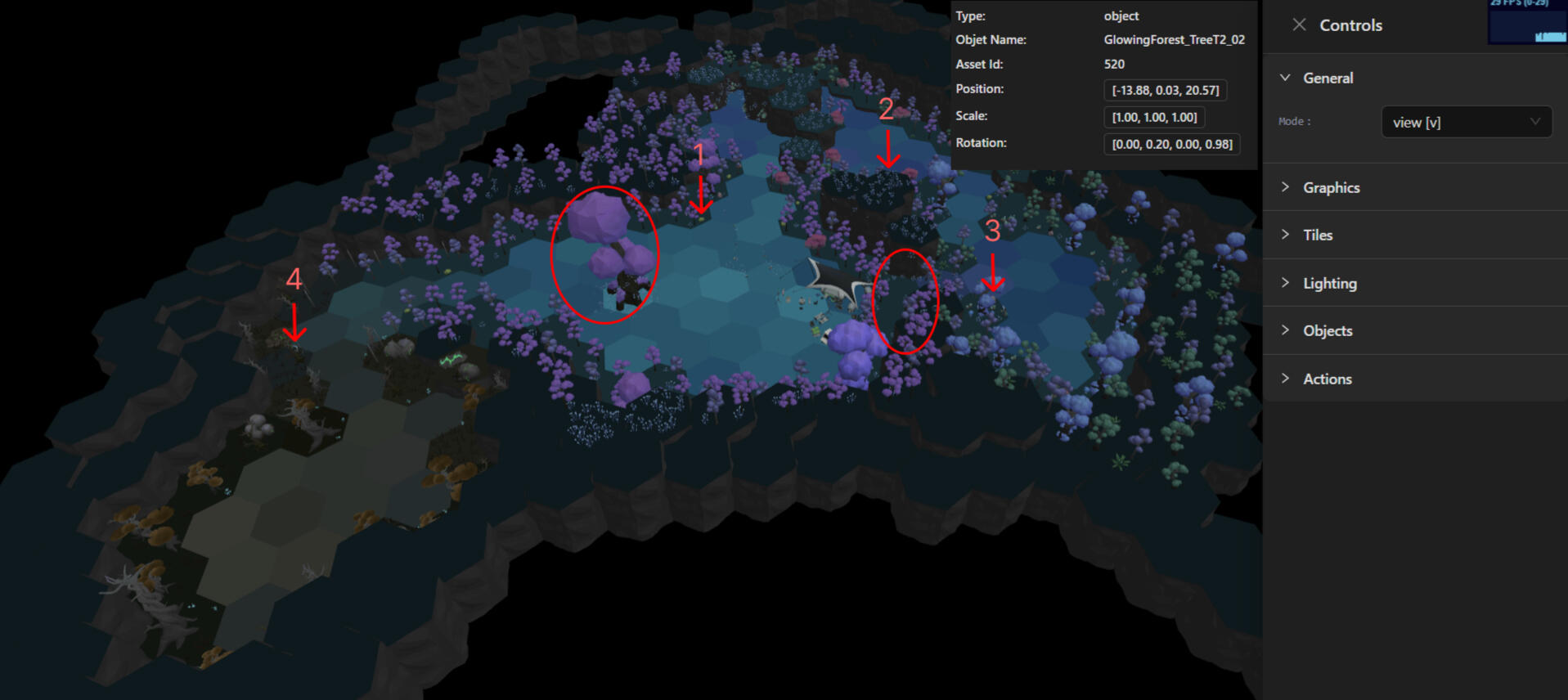 Arrow #1 was additional gatherable assets added for clarity and to avoid null states for other players on the server. We also added additional objects for players to interact with and learn about the world (as shown below).